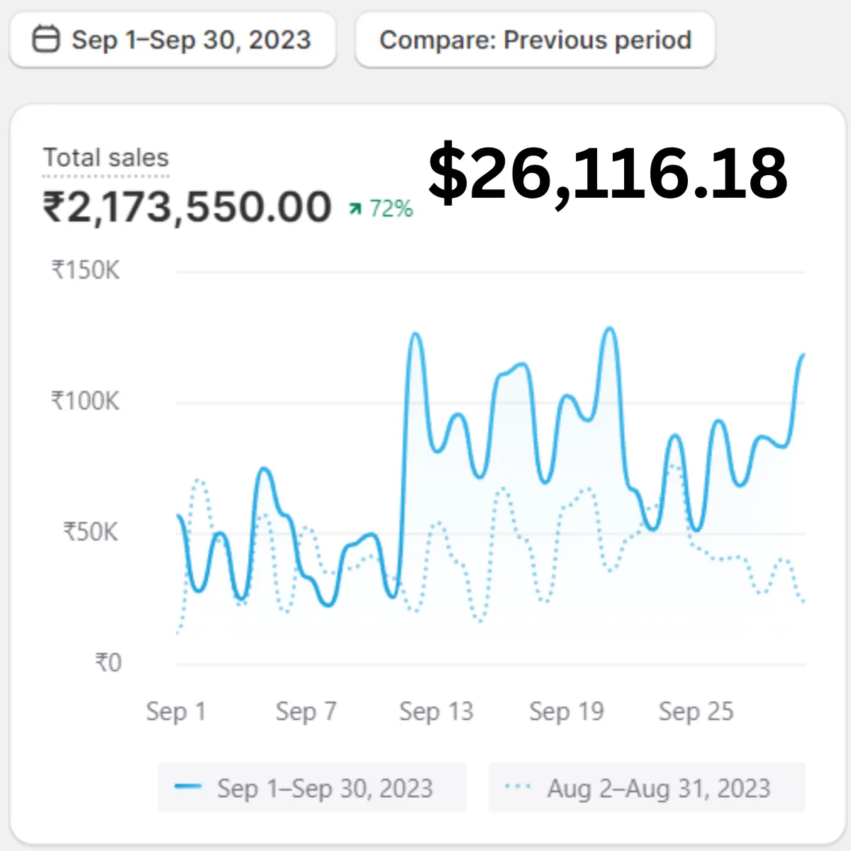 We revamped the brand's landing page, executed precise ad campaigns on platforms like Facebook and Instagram, and created engaging content. Email marketing and data-driven decision-making solidified our approach. The result? A phenomenal 1200% sales increase from ₹1 lakh to ₹13 lakhs monthly.